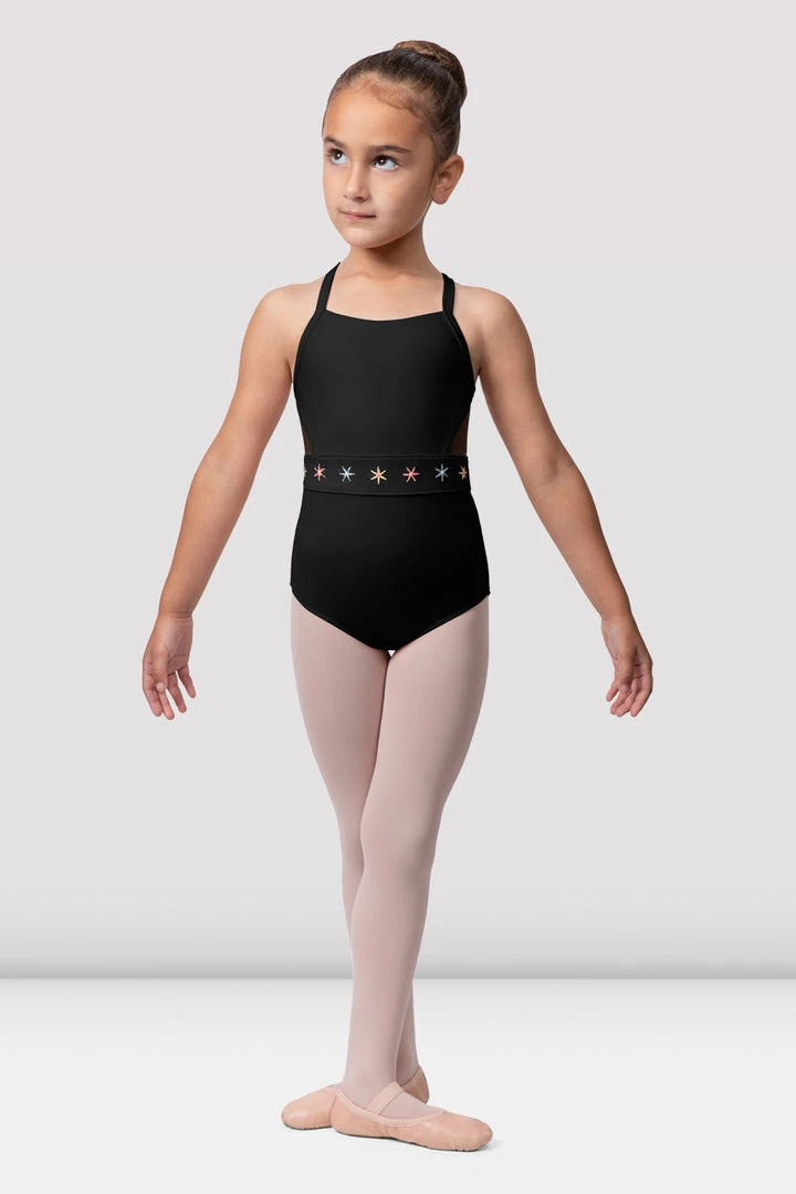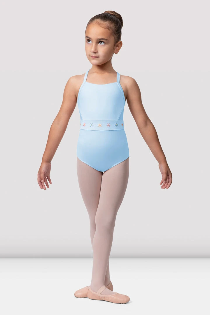 Fable Camisole Leotard features a scoop neck with a wrap back strap style and mesh panelled back, beautifully finished with embroidered flowers.Â
