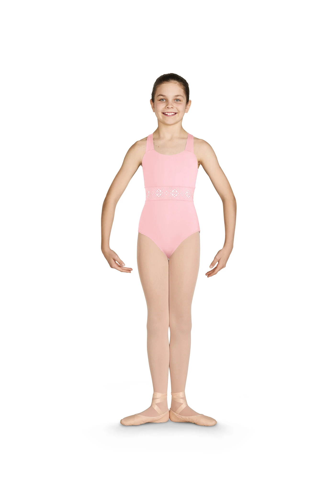Our Bloch girls Neema wide strap leotard features a contrast laser cut waist panel, wide set straps and a racerback. Part of the Girls Bloch Florence collection featuring contrasting laser cut floral detailing, perfect for both stage and studio.