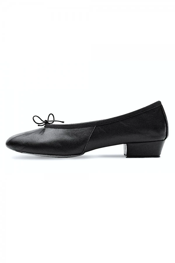 Leather split sole ballet upper with a 1 inch heel for lift and support.