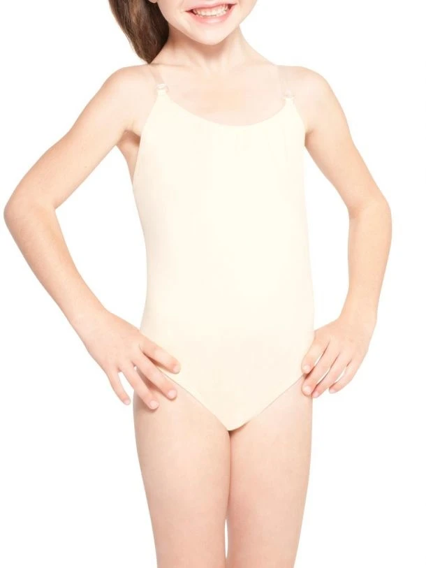 The best-selling foundation for layering dancewear is the Camisole Leotard with Clear Transition Straps. Adjustable clear straps transition between three back neckline positions for different looks and functions. Slightly curved back ensures the undergarment will stay concealed under most dancewear. Highly recommended for every rising dancer.