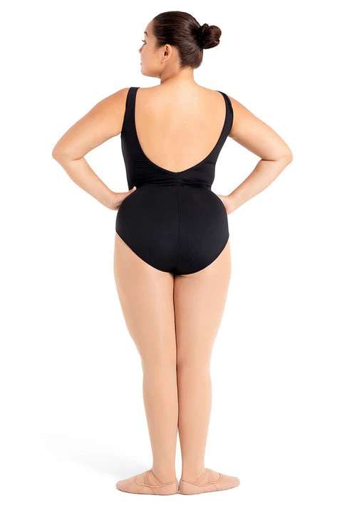 Flattering boatneck leotard creates impactful drama with a pinched, open back.
