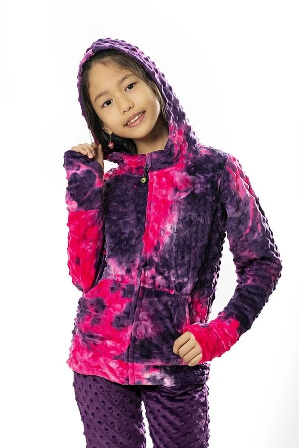 A fan favourite, our signature Tie Dye Minky hoodie is super plush and cozy and so silky soft against the skin making it tempting to lounge in luxury all day long and she will not want to take it off. Â Not to mention its lightweight making it ideal for layering. As Chic, as they are comfy Limeapple Minky bubble hoodie, will keep her cozy and comfortable all day long.Â