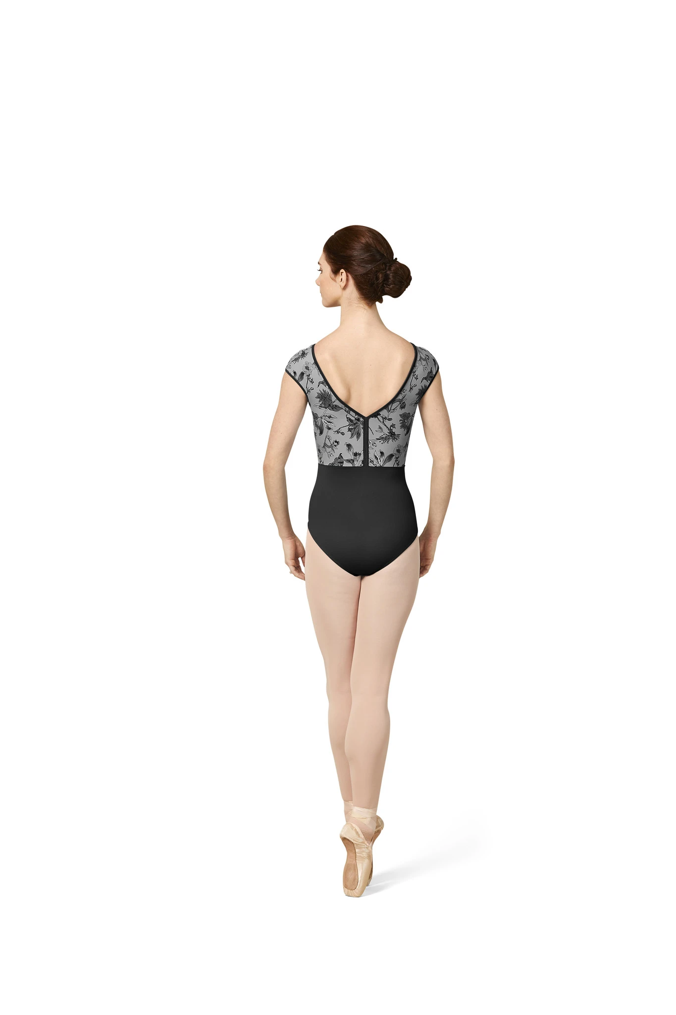 The Mirella Jasmine print cap sleeve leotard features a flattering v-neckline and low v-back, perfectly paired with a jasmine floral print bodice. Part of the Mirella Jasmine collection featuring a feminine floral jasmine print and contrasting color block panels in a fresh spring color palette. Stylish, comfortable, and flattering, so you can work on perfecting your lines feeling confident that you look and feel your best.
