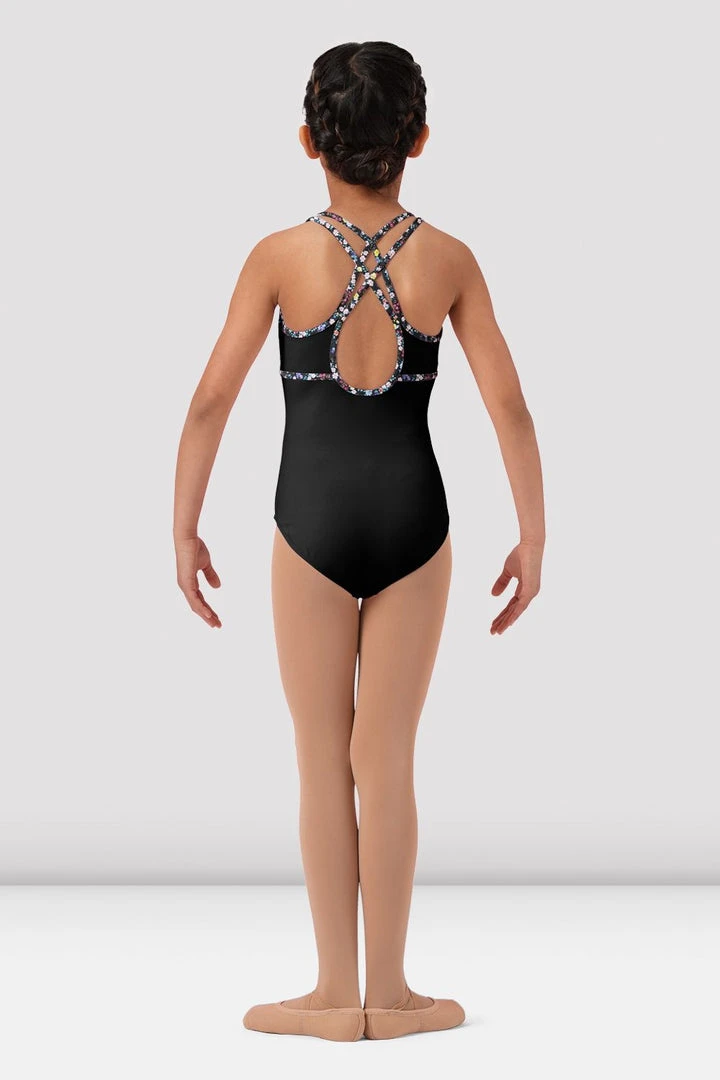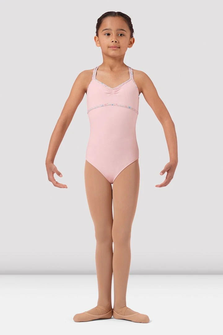 Mirella Ditsy Floral Camisole Leotard features double camisole steps with an open back design with dainty floral print details. Part of the Girls Mirella Ditsy Floral Collection with charming designs including delicate floral prints, soft mesh panels in a trio of enchanting pastel tones.