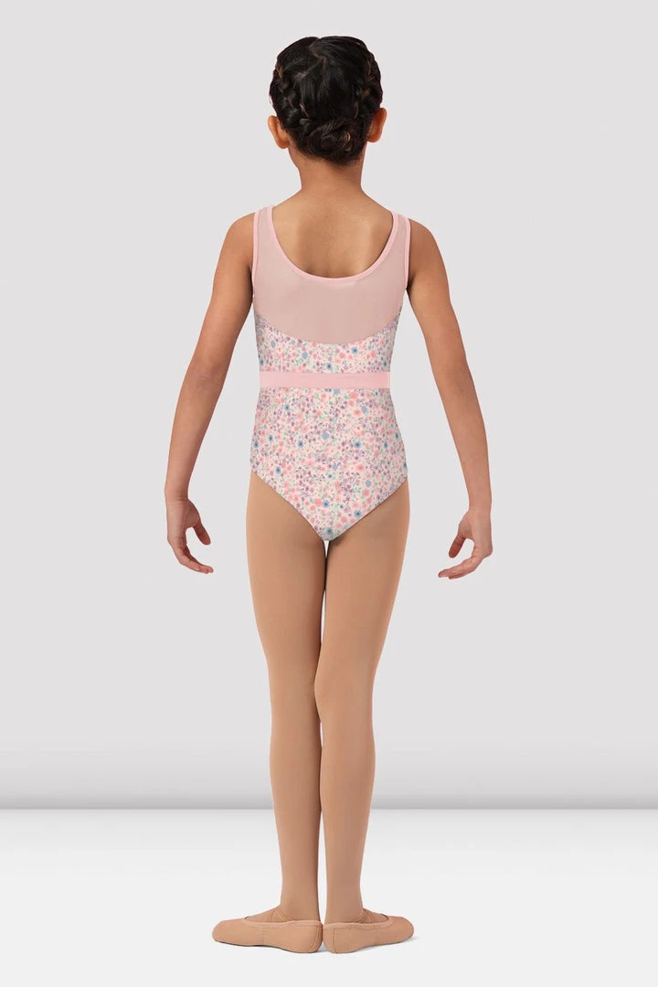 Mirella Ditsy Floral Scoop Back Leotard features a scoop neck with tank sleeves and low scoop back in a dainty floral print. Part of the Girls Mirella Ditsy Floral Collection with charming designs including delicate floral prints, soft mesh panels in a trio of enchanting pastel tones.