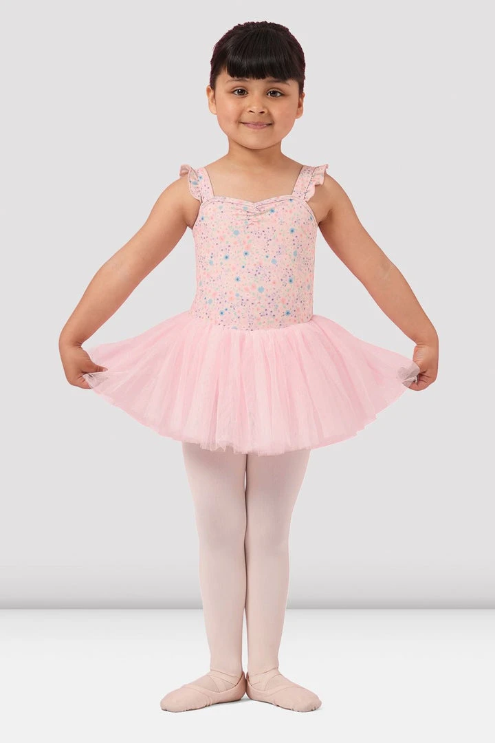 Mirella Ditsy Floral Scoop Back Leotard features a scoop neck with tank sleeves and low scoop back in a dainty floral print. Part of the Girls Mirella Ditsy Floral Collection with charming designs including delicate floral prints, soft mesh panels in a trio of enchanting pastel tones.