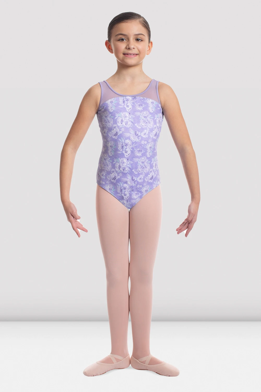 This Girls Mirella Tank Leotard features a scooped neck and back with a full body flower print design and upper mesh panels. Part of the Girls Mirella Jardin Collection featuring a stunning contrast of delicate floral print, colored panels and stylish mesh detailing, fashioned in a sweet spring inspired palette.