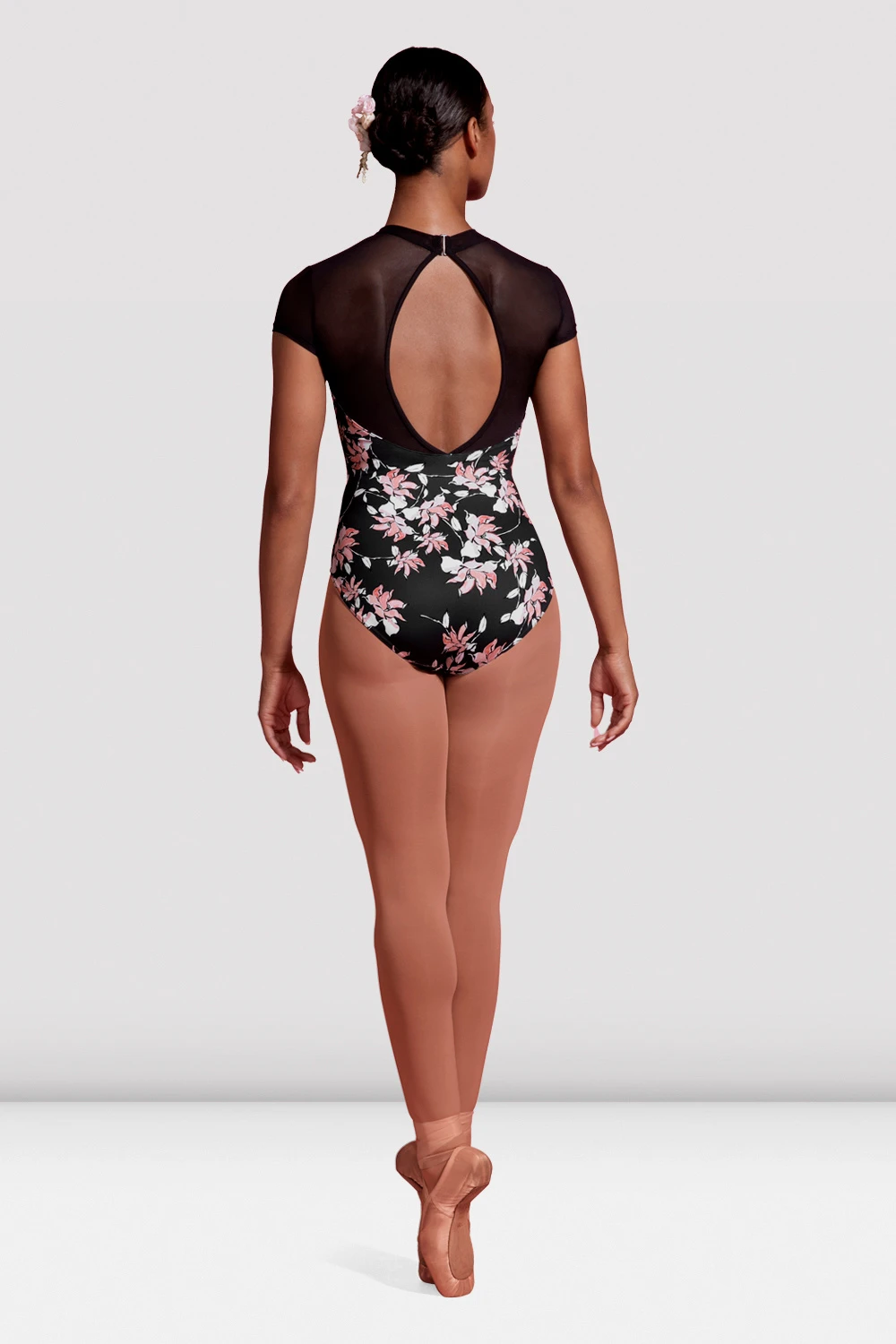 This Ladies Mirella Cap Sleeve Leotard features a mock neck with a mesh upper and flower printed bodice and open keyhole back. Part of the spring inspired Mirella Jardin Collection featuring a stunning contrast of delicate floral print, colored panels and stylish mesh detailing. A beautifully cut collection which enhances lines and boasts style, perfect for both studio and performance.
